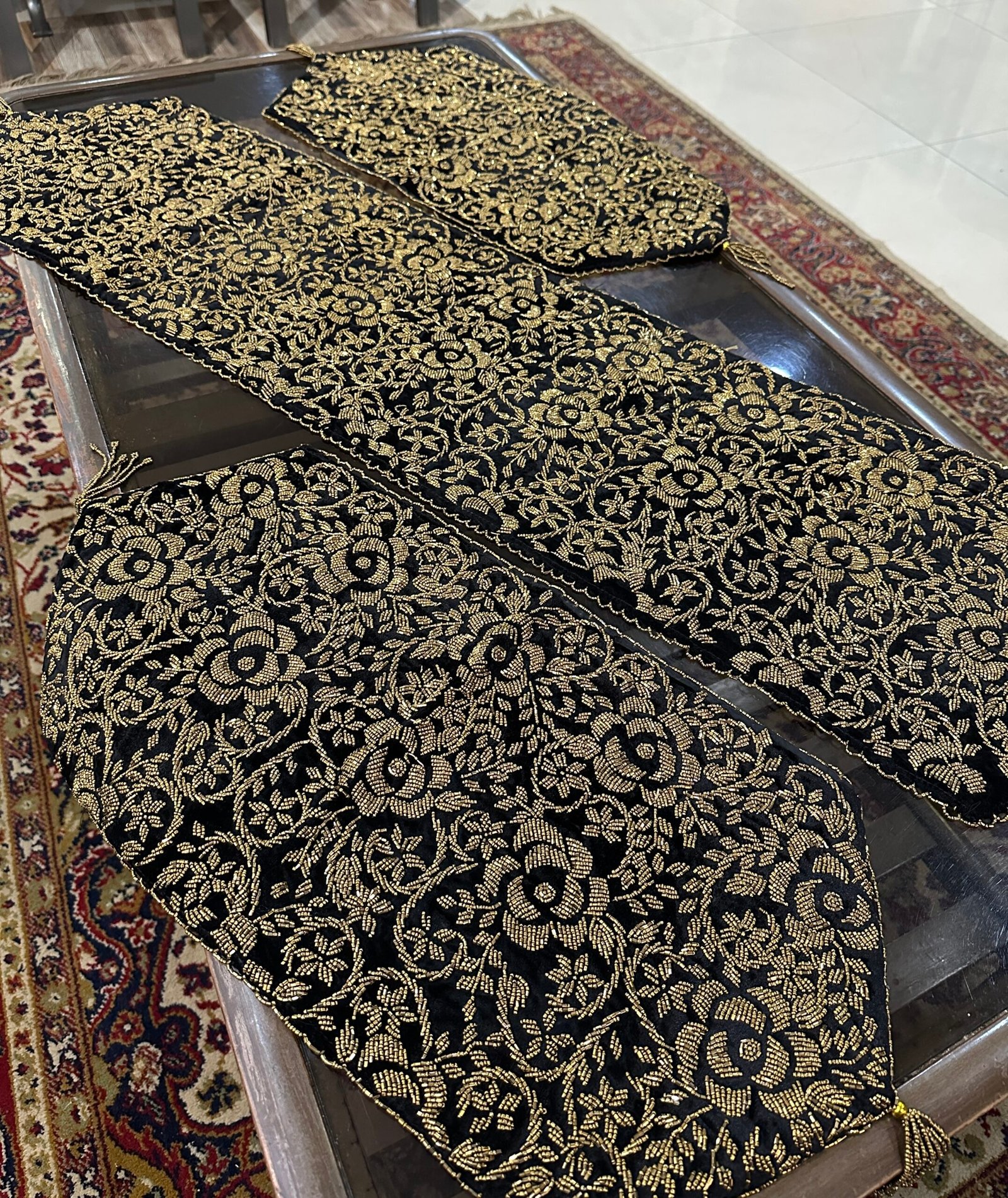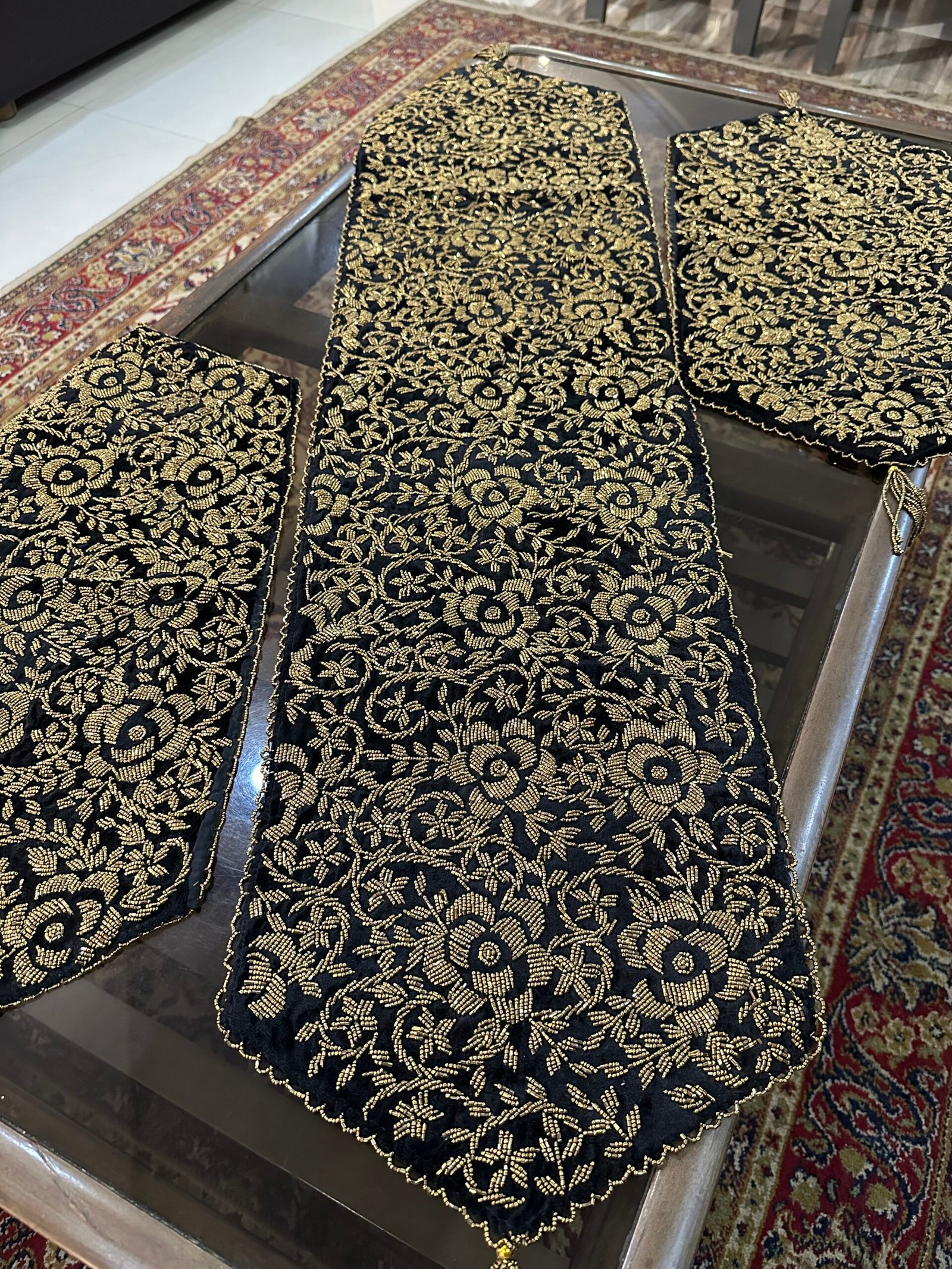Elevate your dining experience with our exquisite handcrafted 3-piece runner set. Each piece is meticulously made with attention to detail, showcasing unique patterns and vibrant colors that complement any table setting. Perfect for dining occasions or as a stylish accent in your home, this runner set brings warmth and sophistication to your décor. Made from high-quality materials, it promises both durability and beauty, making it a cherished addition to your home for years to come.