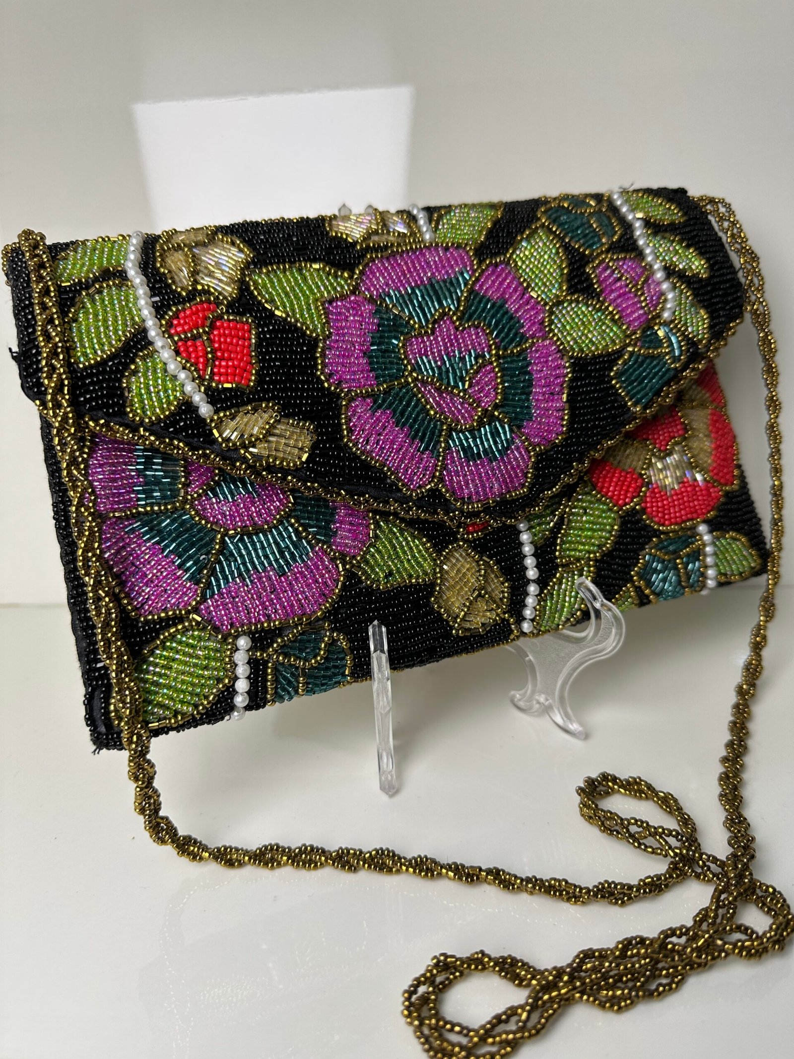 All clutches have same front and back (heavy embellished beads work on both sides)