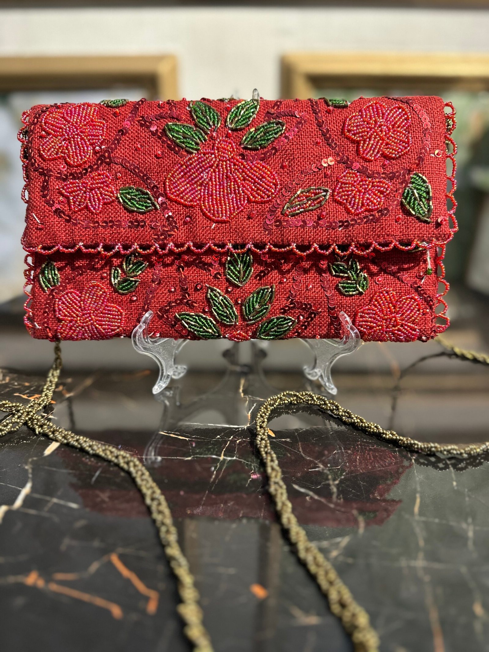 Introducing the handmade classic clutch, a perfect blend of artistry and functionality. Designed with meticulous craftsmanship, this clutch is adorned with an exquisite combination of beads and shimmering sequins, making it a versatile accessory for any occasion. Whether you’re dressing up for a formal event or adding a touch of sophistication to casual outings, this clutch is bound to elevate your style effortlessly.