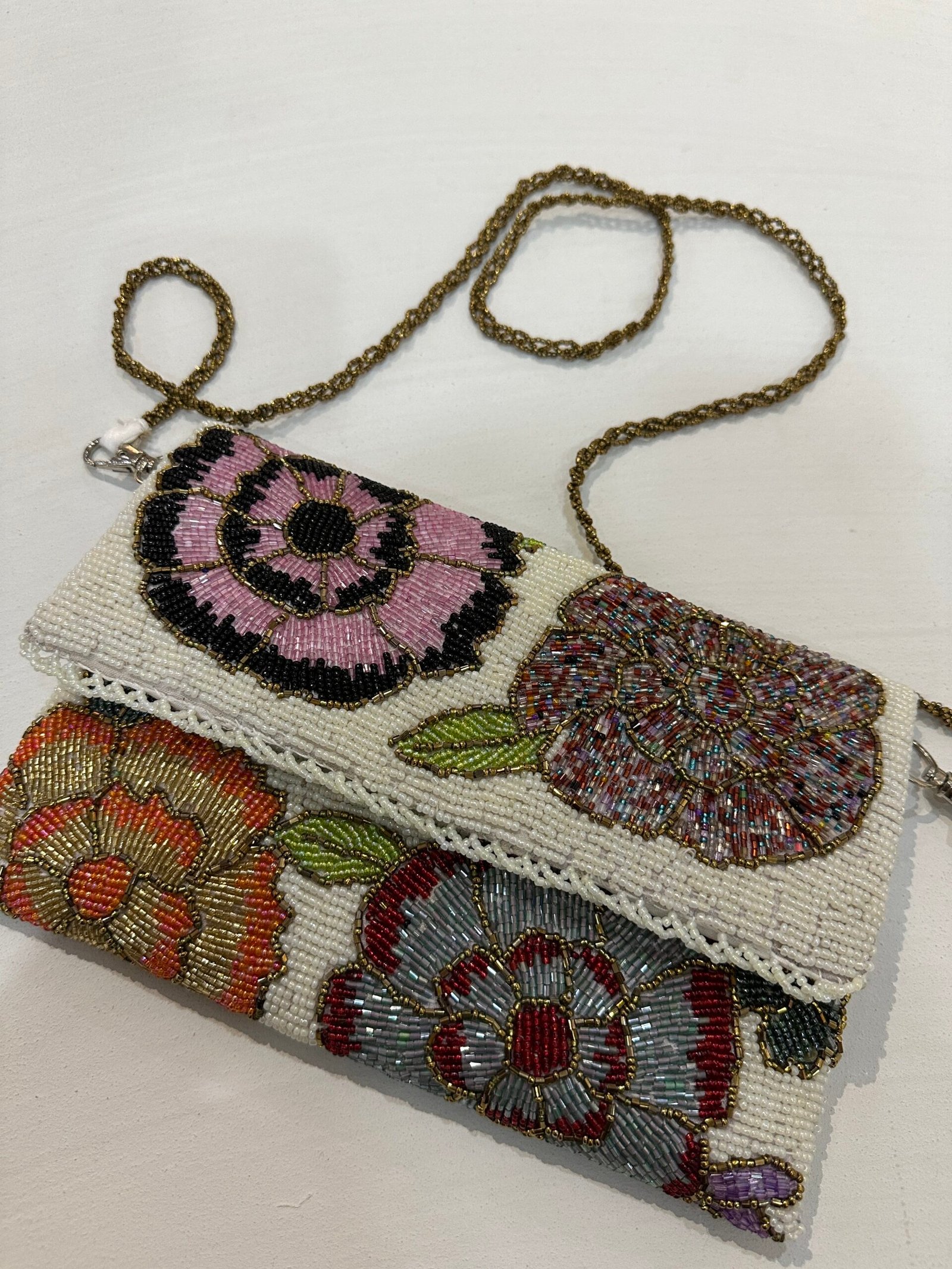 • Each clutch comes with a shoulder length strap made of beads.